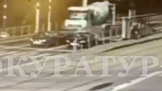 Бетономешалка на скорости снесла три легковушки в Москве и попала на видео