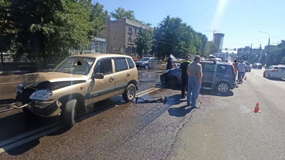 По предварительным данным, водитель автомобиля Nissan Note, двигаясь со стороны памятника Славы в направлении центра города, при перестроении столкнулся с автомобилем Toyota Camry, который двигался в попутном направлении. Впоследствии водитель Nissan Note не справился с управлением и допустил опрокидывание транспортного средства на бок. После чего, по инерции, продолжил движение и столкнулся с автомобилем Chevrolet Niva, который от удара допустил столкновени с машинами Ford Focus и Toyota RAV4. Автомобиль Toyota Camry от столкновения выехал на полосу встречного движения и совершил столкновение с машинами Lada Largus и Hyundai.