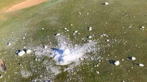 По его словам, утром в гольф-клубе было около одного градуса ниже нуля. Сначала руководитель клуба предположил, что это замерзшая вода из системы полива. Но найденная льдина была сопоставима по размеру с тремя или четырьмя пакетами льда и глубоко вонзилась в землю.