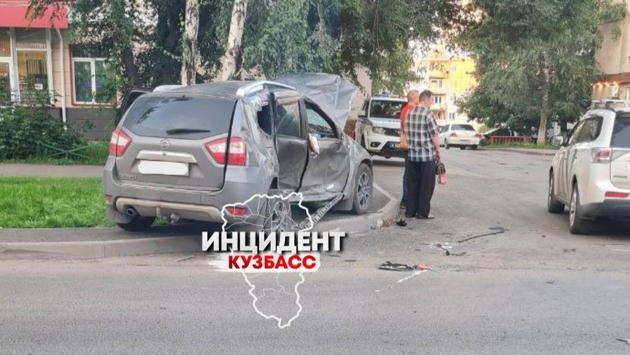 Автомобиль превратился в груду металла в результате ДТП на кемеровском перекрестке