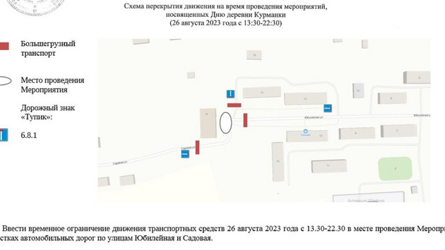 Также в деревне в этот день будет закрыто движение по улицам Юбилейной и Садовой. Ограничения будут действовать с 13:30 до 22:30.