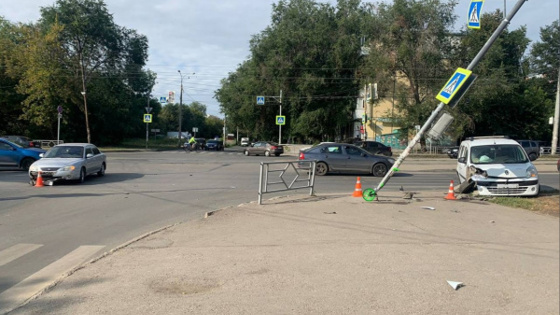 В Самаре автомобиль после удара сбил пешехода и снес светофор