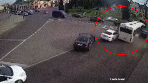 Инцидент с автобусом, который ходит по маршруту №352, произошел на площади Революции. На записи видно, как машина врезается в стоящие перед ним легковушки.