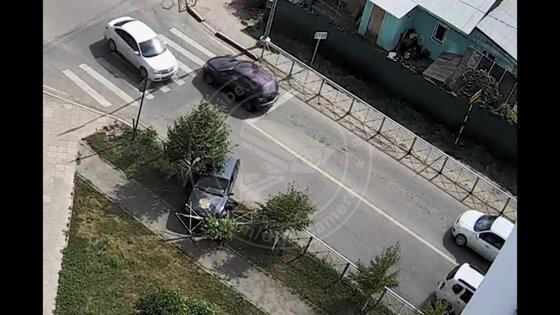 Позже в соцсети «ВКонтакте» появился ролик под названием «Поворот не туда». На кадрах видно, как отечественный автомобиль едет по улице Терновского со стороны аэропорта и пытается повернуть налево, на Сухумскую. Машину заносит на встречную полосу. Водитель успевает вырулить и в последнее мгновение избегает столкновения с трактором, но затем врезается в забор и дерево, оказавшиеся на его пути.