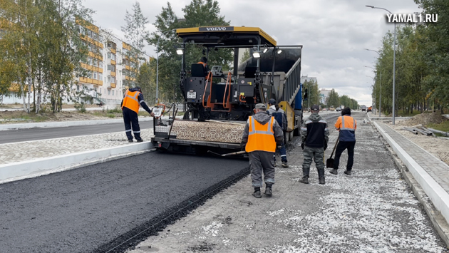 Дорожники укладывают асфальт на главной дороге Ноябрьска. ВИДЕО
