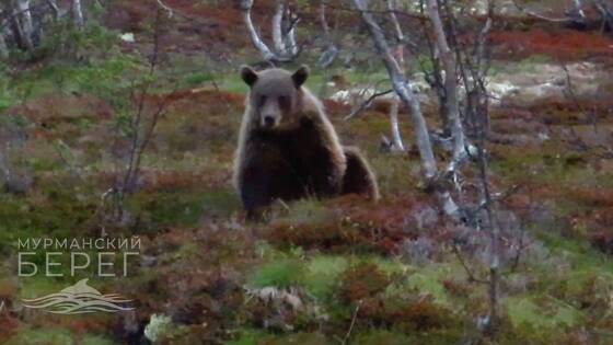 Ролик снят на Кольском полуострове. На записи видно, как любопытный хищник ходит между деревьями, а затем садится на землю недалеко от россиян. Медведь чешется и смотрит на рыбаков.