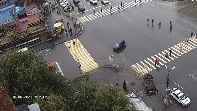 На кадрах с камер компании «Интерсвязь» водитель не справился с управлением после того, как столкнулся с другим автомобилем на перекрестке. После столкновения каршеринг въехал в ограждение на обочине и перевернулся.
