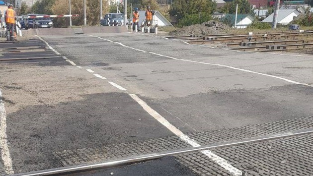 Однако сегодня выбоины начали латать и приводить подъездные пути к ж/д переезду в порядок.