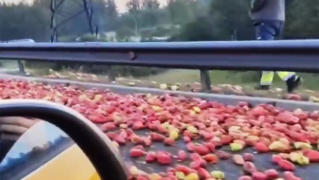 По данным очевидцев, овощи рассыпались на трассе М4 в районе Михнево. По предварительным данным, фура с овощами попала в аварию, и перцы из нее высыпались прямо на дорогу.