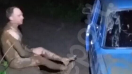 Герой ролика ходит возле автомобиля, пытается оторвать от него номер. После этого мужчина падает в грязь и начинает заливать мутную жидкость на другую машину.