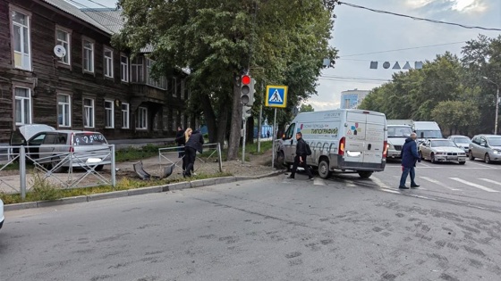 В результате столкновения оба автомобиля врезались в пешеходное ограждение, после чего универсал оказался на тротуаре.