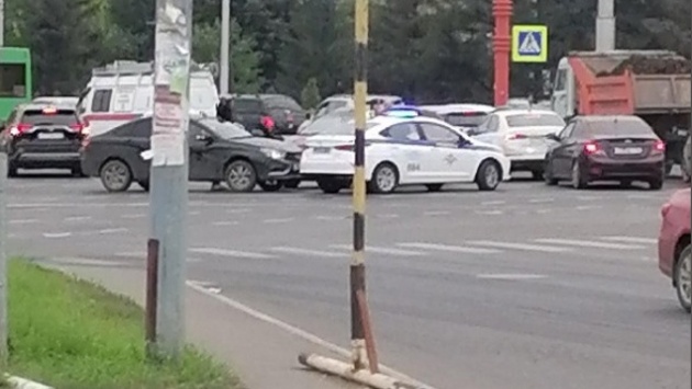 На одном из перекрестков в центре Кемерова произошло ДТП – столкнулись сразу три автомобиля.