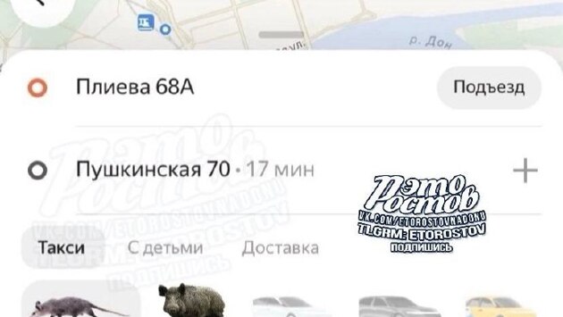 Ростовская область, 13 сентября 2023. DON24.RU. Ростовчане в соцсети обсуждают «новые тарифы» на такси, такие как «опоссум» и «кабан+». Мемная фотография появилась в сети. «О-о-о, теперь можно кабанчиком добраться до вокзала», «А как же «Лодка+»?», «С кабаном хоть в пробках не будем стоять», «А где лодка?» – пишут в комментариях жители города. За час запись набрала в сети более 400 лайков и репостов. Ростовчане отметили, что поездка на «кабане» будет дороже, но быстрее, чем на «бизнесе». Напомним, минприроды оказывает содействие в поимке кабанов в Ростове. Вчера вечером один из них был пойман.