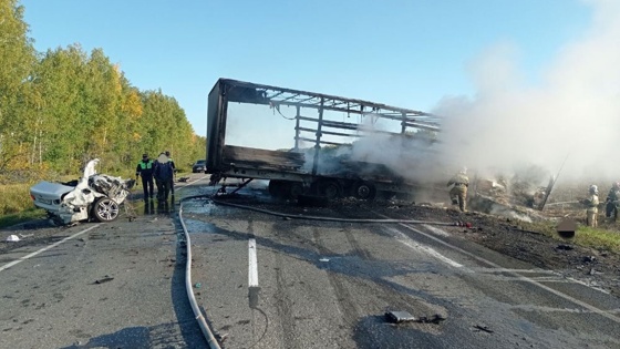 По данным ГИБДД Тюменской области, BMW внезапно закрутило по дороге, вероятно, лопнуло колесо. Иномарку выбросило на встречную полосу, прямо на большегруз. После столкновения легковушка загорелась - водитель и пассажир погибли мгновенно.