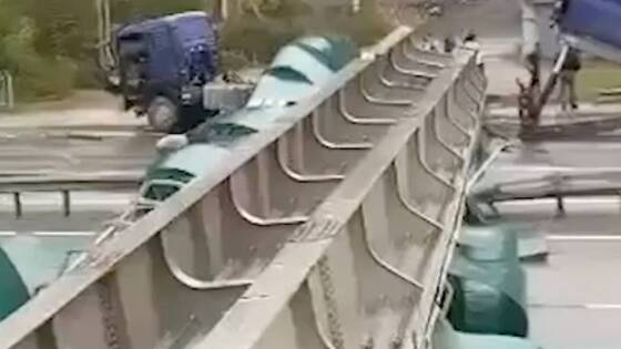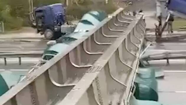 Виадук рухнул на российскую федеральную трассу из-за самосвала