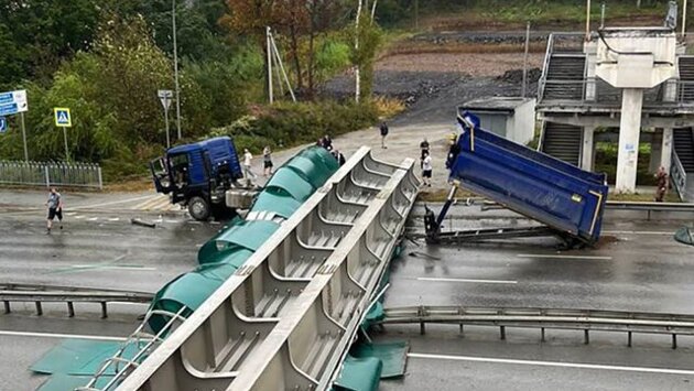 Водитель самосвала пострадал при обрушении пешеходного виадука на выезде из Владивостока, сообщается в телеграм-канале прокуратуры Приморского края. По ее данным, ЧП произошло 18 сентября около 15:18 (08:18 мск). На автомобиле Sinotruk Howo во время движения был поднят грузовой отсек, который ударился о надземный пешеходный переход. В результате виадук обрушился на проезжую часть. Пострадавшему оказывается помощь медиков. Ранее уточнялось, что ДТП произошло на федеральной трассе Владивосток – Хабаровск. Движение на дороге перекрыто сотрудниками ГИБДД. Образовался затор.