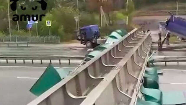 Во Владивостоке самосвал с поднятым кузовом врезался в мост и обрушил его