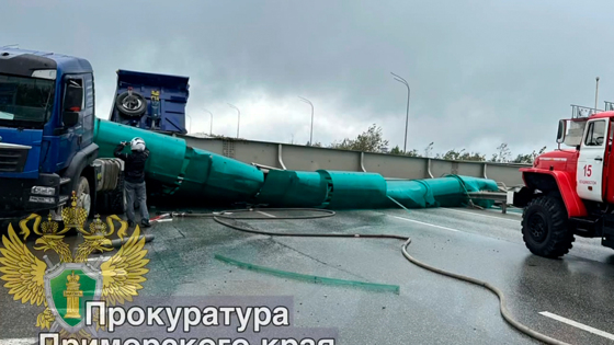 На трассе Владивосток — Хабаровск самосвал снёс с опор крытый виадук