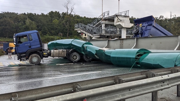 У водителя грузовой машины, поднятый кузов которой снес пешеходный виадук на шоссе вблизи Владивостока, диагностировали черепно-мозговую травму и переломы.