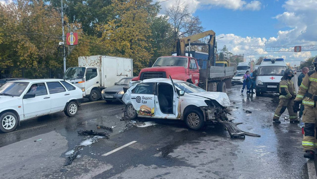 В ведомстве отметили, что водитель автомобиля Volkswagen Polo при перестроении выехал на встречную полосу, столкнувшись с автомобилем Toyota Prius и грузовым автомобилем Ford.