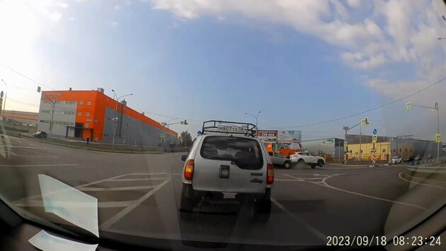 Судя по кадрам, все произошло в 8:23. Два водителя двигались по улице Рябова навстречу друг другу и не поделили перекресток: один хотел проехать прямо, другой - повернуть налево.