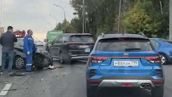 На улице Поляны в Москве произошло массовое ДТП, сообщает Telegram-канал Mash. В аварии столкнулись сразу шесть автомобилей: Audi, Mercedes-Benz, Skoda, Volkswagen, Hyundai и Nissan. Два человека получили травмы, врачи оказали им помощь на месте происшествия. На видео с последствиями аварии видно, что в результате ДТП оранжевое купе Nissan оказалось на разделительном газоне. У машины повреждены передняя часть и левый бок. Разбитые кроссовер Audi Q7 и седан черного цвета остановились в левом ряду. На место происшествия прибыли пожарные. На кадрах с камеры наблюдения, опубликованных в Telegram-канале "Дептранс. Оперативно", видно, что Nissan вылетел с проезжей части, пересек разделительный газон и врезался во встречные автомобили, которые двигались плотным потоком. Затем его отбросило обратно на газон.