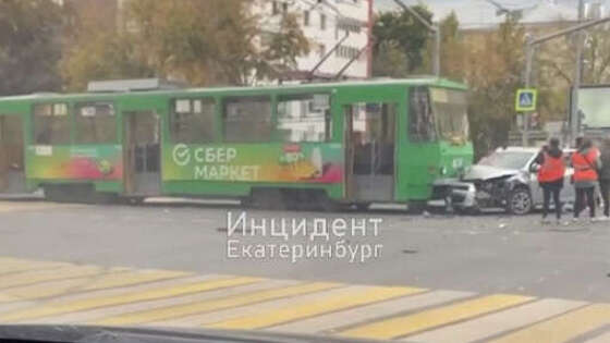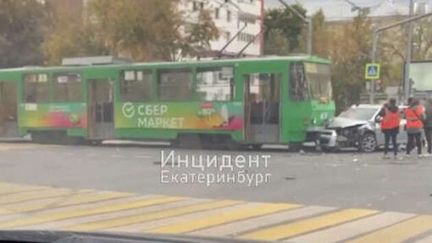В Екатеринбурге приостановили движение трамваев из-за массового ДТП. Об этом сообщает Telegram-канал "Инцидент Екатеринбург". Авария произошла на перекрестке с улицей Фуманова и попала на видео. По словам очевидцев, водитель машины марки Chevrolet проехал на красный сигнал светофора, после чего снес другой автомобиль и врезался в трамвай. На кадрах с места инцидента заметно, что у Chevrolet смяло переднюю часть машины. Второй участник движения также пострадал. На трамвае какие-либо вмятины незаметны. Информации о пострадавших нет. На месте работают представители профильных органов, которые выясняют обстоятельства произошедшего.