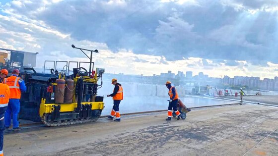 В Новосибирске началась укладка литого асфальта на четвертом мосту через Обь