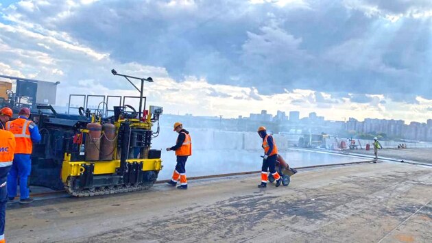 «К устройству дорожной одежды на пролётах моста вантового участка протяжённостью 380 метров приступили после завершения монтажа вант. На текущий момент эта работа выполнена на 25% в пролёте 13-14 под 114-метровым пилоном на правом берег», — говорится в сообщении.