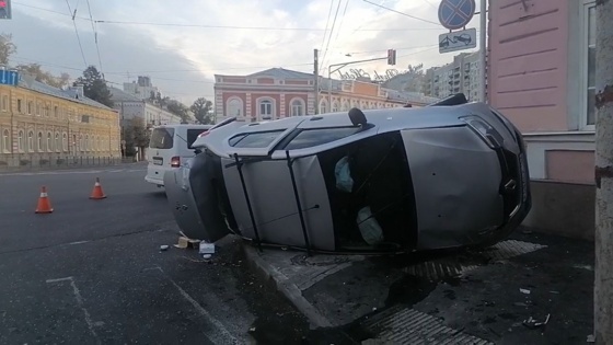 Иномарка столкнулась с микроавтобусом и перевернулась в Нижнем Новгороде