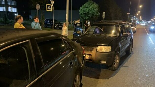 Появилось видео ДТП на Челнокова в Калининграде, где дрифтер на «жигулях» протаранил впереди идущие машины