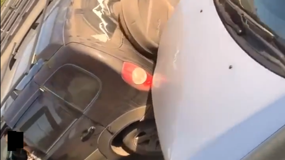 На предоставленных очевидцем кадрах видно, что столкнулись три автомобиля. У одной машины сильно поврежден бампер.