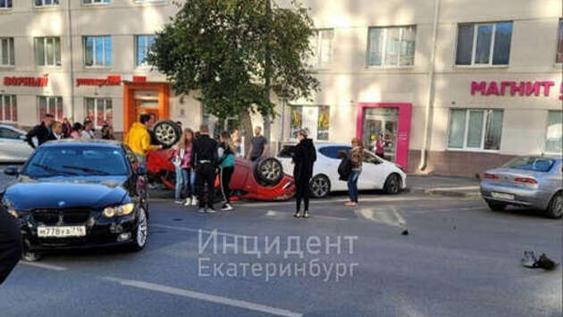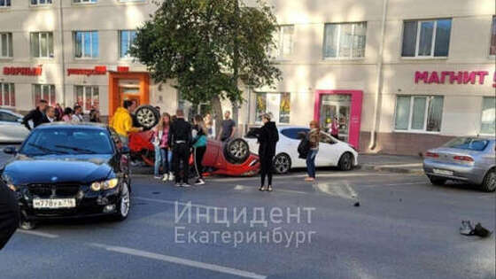 В Екатеринбурге из-за столкновения с BMW перевернулась машина