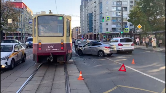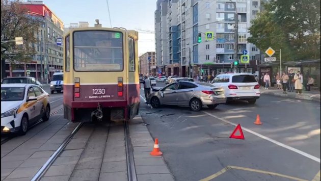 Напомним, авария произошла около 7:00 в районе дома №38. По предварительным данным, водитель Hyundai Solaris не справился с управлением и влетел в трамвай и Kia Soul.