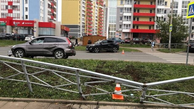 Днем, 28 сентября, на ул. Чистопрудненской в Кирове произошло ДТП. По данным ГИБДД, столкнулись «Хендай Тюксон» и «Хонда ЦРВ». После столкновения «Хонда» совершил наезд на бордюр и дорожное ограждение.