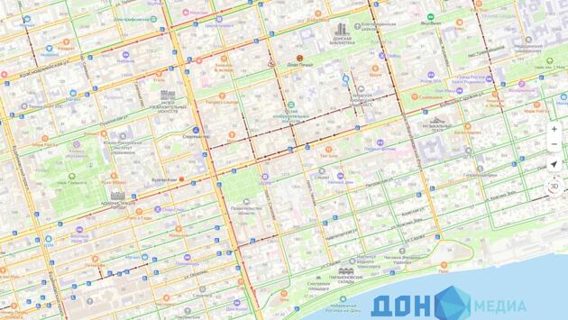 Ростовская область, 29 сентября 2023. DON24.RU. В центре Ростова образовались пробки из-за неработающих светофоров, рассказали ИА «ДОН 24» очевидцы. По словам очевидца, светофоры не работают на пересечении улицы Большой Садовой и проспекта Соколова, а также на пресечении проспекта Соколова и улицы Суворова. Фото: АО «Дон-Медиа»/ don24.ru Согласно сервису Яндекс.карты, пробки образовались на проспекте Ворошиловском, от района набережной до Большой Садовой. Также «красным» отмечены участки на Большой Садовой, проспекте Чехова, Соколова, и Кировском, а также на улице Суворова. Фото: Яндекс карты На улице стоит гул от сигнала машин. Автомобилисты не могут определиться куда, как и кому проезжать.