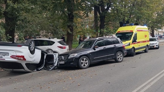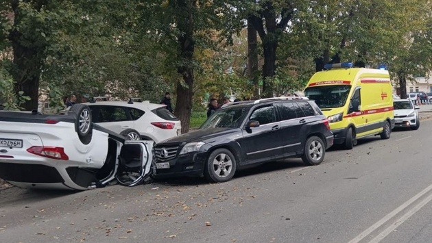 Массовое ДТП в Екатеринбурге: столкнулись четыре машины, одна перевернулась