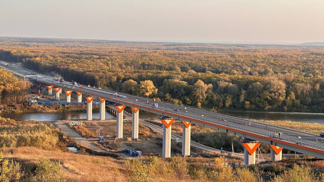 На 6 этапе скоростной дороги М‑12 «Восток» (Сергач, Нижегородская область — Канаш, Чувашская Республика) СУ-967 завершает устройство верхнего слоя покрытия на мосту через реку Сура. В общей сложности на сегодняшний день уложено почти 2800 тонн асфальтобетона. Этот мост свяжет Нижегородскую область и республику Чувашия.