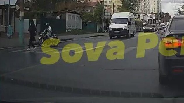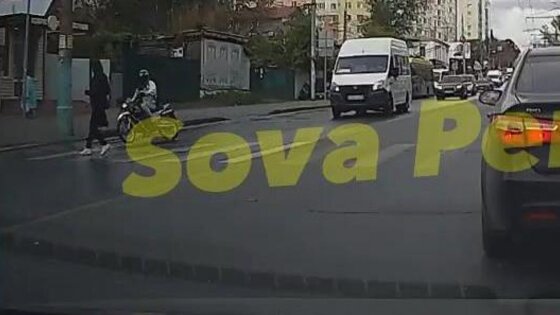 Женщина шла по зебре, не глядя ни налево, ни направо, и, когда практически добралась до конца дороги, водитель двухколесного транспортного средства преградил путь - проехал мимо вплотную к ней, вероятно, повредив пешеходу правую ногу.