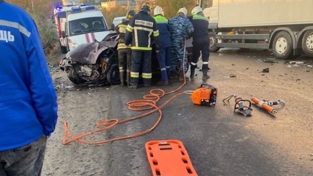 В Волгограде в ДТП с фурой легковой автомобиль практически раздавило