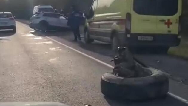 Авария произошла с участием большегруза, который предлагает услуги откачки, и седаном. От удара автомобили вынесло по разные стороны дороги. Также одна из пострадавших машин потеряла колесо.
