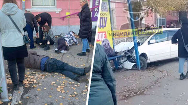 В Барнауле автомобиль вылетел на автобусную остановку с людьми