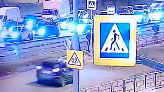 Наезд на ожидающих транспорта пассажиров попал на видео. На кадрах видно, что автомобиль едет по разделительной полосе, не сбавляя скорости, после чего врезается в толпу людей.