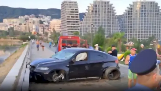 Легковушка преодолела склон и врезалась в заградительный барьер на высоте более 15 метров над уровнем водоёма.