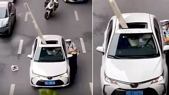 Согласно сообщениям местных СМИ, труба, упавшая со строящейся проезжей части, прошла в считанных сантиметрах от головы автомобилиста, оставив его в, мягко говоря, шокированном состоянии, сидящим в повреждённом транспортном средстве.