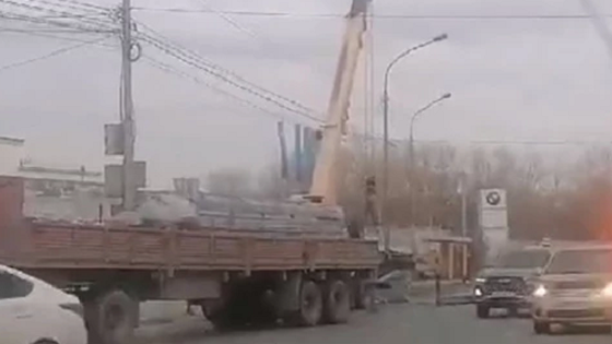На улице Большевистской в Новосибирске произошел инцидент, связанный с большегрузным автомобилем. Стоящий на грузовике станок сорвался и упал на дорогу. Событие произошло 21 октября примерно в 12:00.