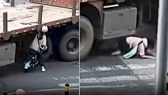 Впрочем, судя по кадрам видеозаписи, китаянке повезло и она, выбравшись самостоятельно из-под колёс большегруза, принялась за поиски своего скутера.