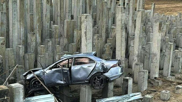 Авария произошла на улице Амирхана, где ведется строительство здания. Легковой Honda Accord слетел в котлован стройплощадки и оказался на сваях строящегося объекта. Со слов очевидцев, водитель машины получил незначительные повреждения.