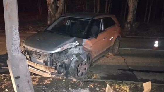 Под Волгоградом на ночной дороге иномарка врезалась в столб