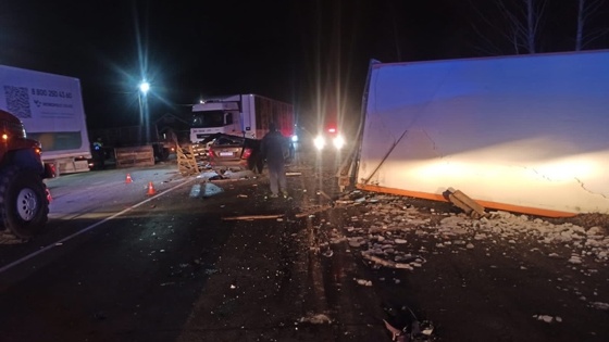 На трассе в Сосновском районе Челябинской области вечером 23 октября погиб водитель грузовика. Как сообщает региональная Госавтоинспекция, смертельная авария произошла в 18 часов 35 минут на 15 километре автомобильной дороги «Обход города Челябинска Западный». По предварительным данным, грузовик «Мерседес» с прицепом столкнулся с прицепом грузового автомобиля той же марки, за рулем которого находился молодой человек 1994 года рождения и который в тот момент поворачивал налево. После этого «Мерседес» выехал на встречную полосу, где совершил столкновение с автомобилем «Лифан» под управлением мужчины 1977 года рождения, вылетел в кювет и опрокинулся. Водитель грузовика, на тот момент не установленный, погиб на месте происшествия.